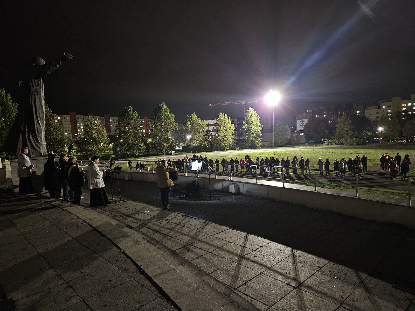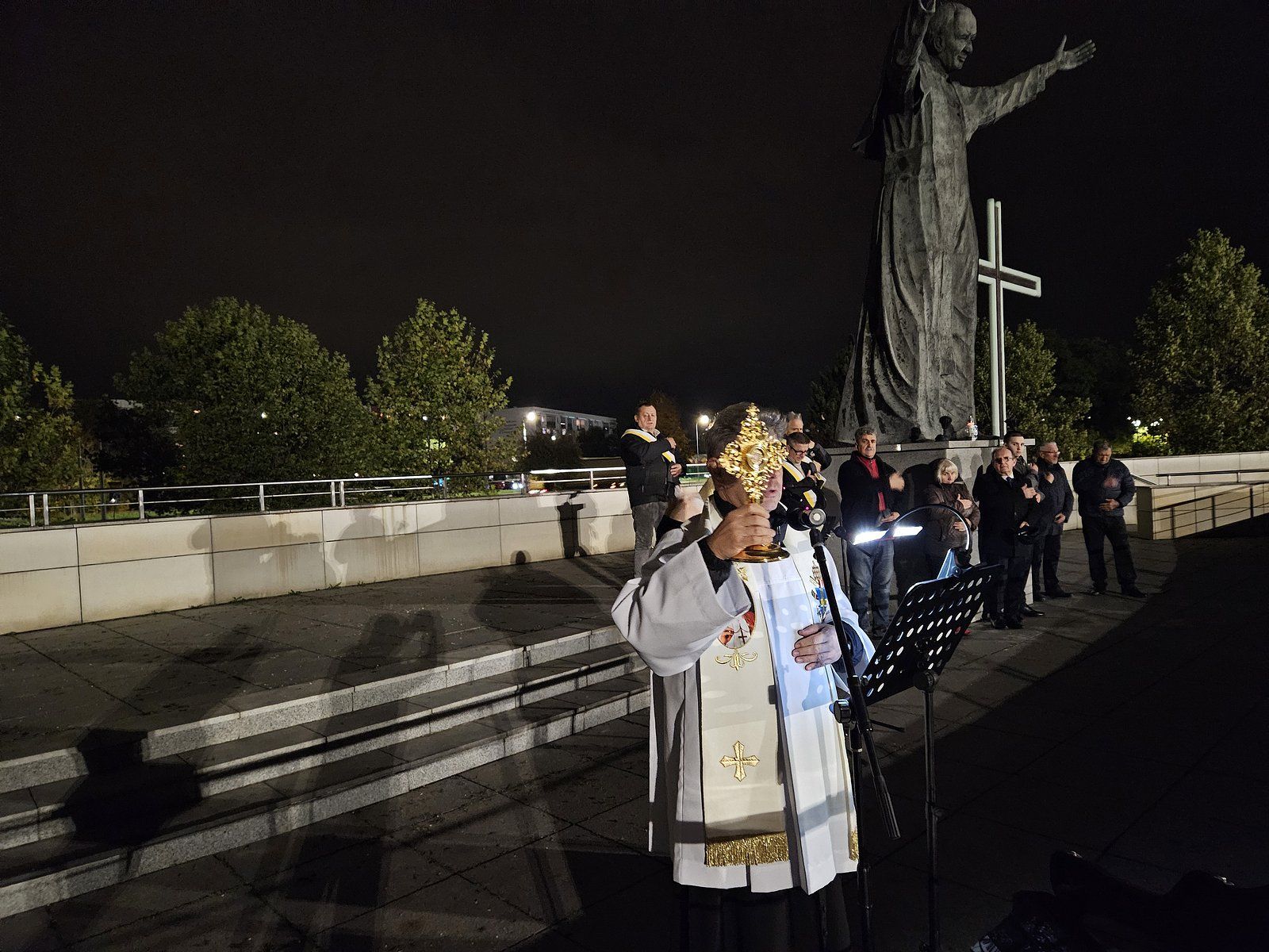 W czwartek, 16 października obchodzimy kolejną rocznicę wyboru kardynała Karola Wojtyły na papieża. O godzinie 18.00 w naszym kościele uroczystą Mszę Św. celebrował i homilię wygłosił nasz wikariusz ks. Radosław Skałka, a o godzinie 19.00 wierni zebrali się na Placu Papieskim, by wspólnie odmówić różaniec. Modlitwie różańcowej przewodniczył ks. Radosław Skałka.