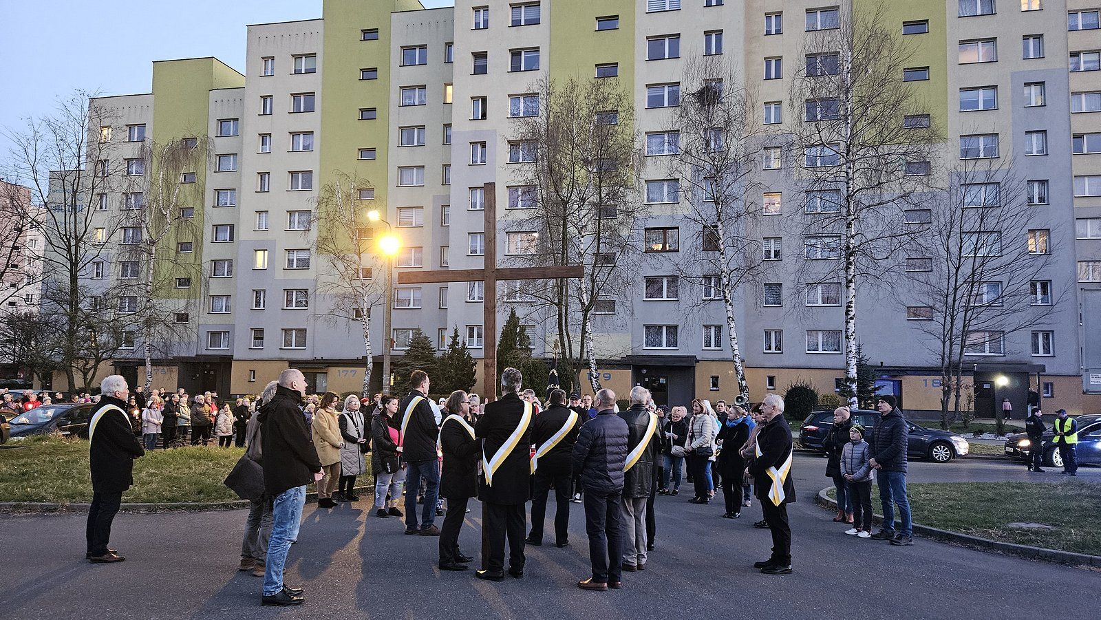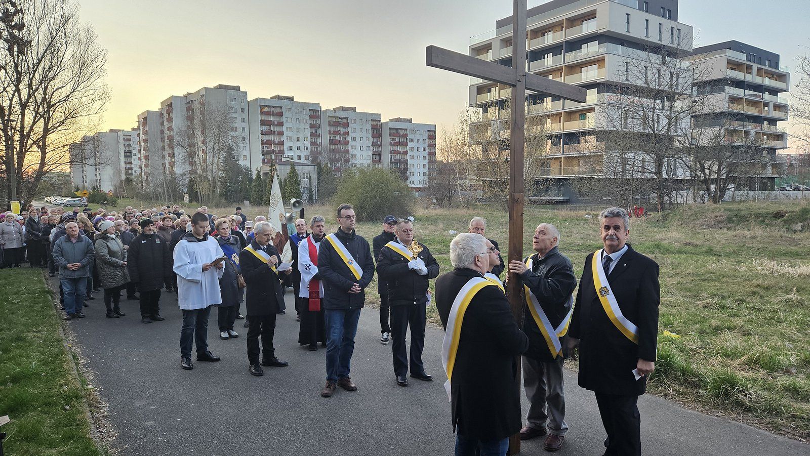 Po uroczystej Mszy Świętej o g.18.00, której przewodniczył i homilię wygłosił ks. Tomasz Flak SCJ - proboszcz parafii środulskiej udaliśmy się ulicami naszej parafii na Plac Papieski rozważając Drogę Krzyżową Pana naszego Jezusa Chrystusa.