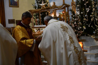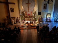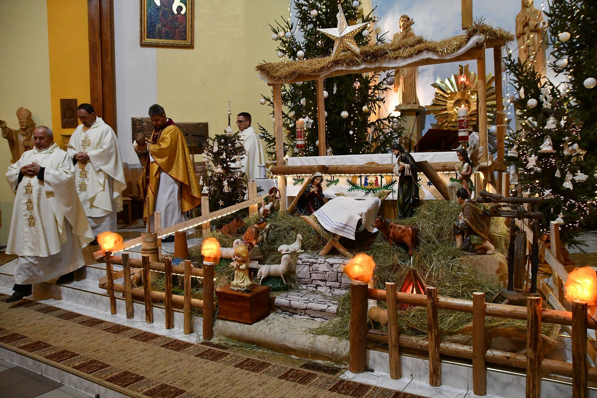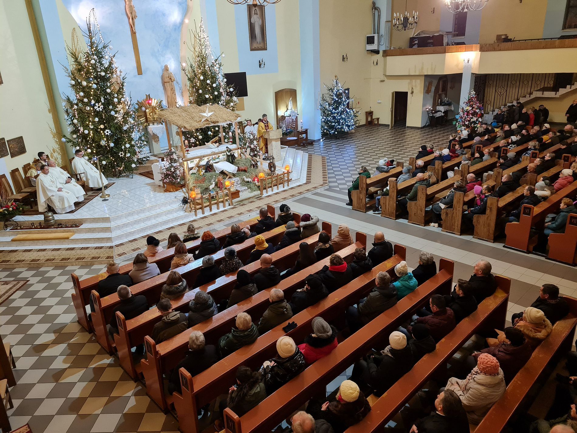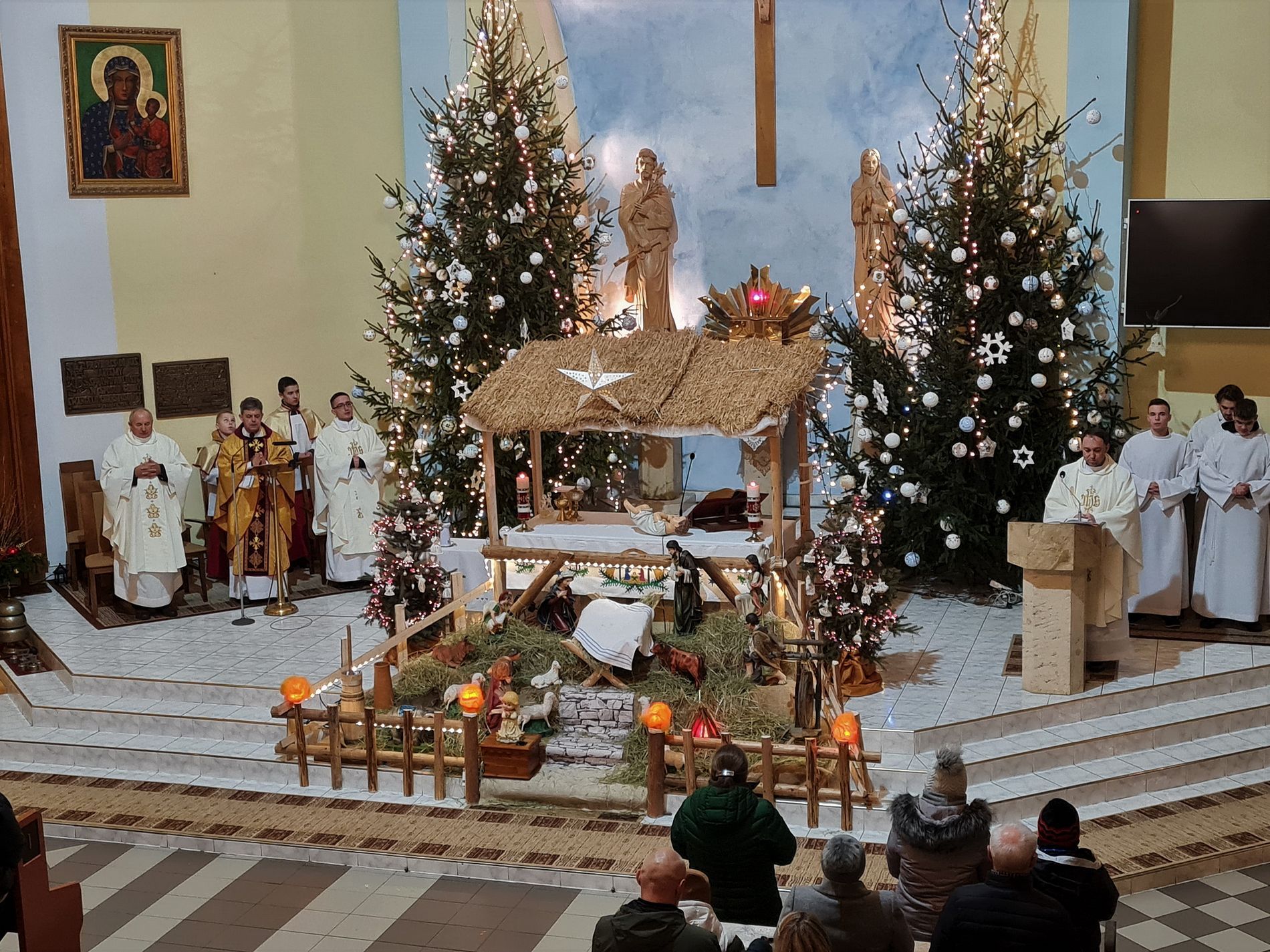 24 grudnia o godzinie 22.00 w naszym parafialnym kościele, radosnym śpiewem kolędy "Wśród nocnej ciszy", rozpoczęła się tradycyjna pasterka. Na wzór pasterzy z Betlejem przybyliśmy do świątyni, aby pokłonić się nowonarodzonemu Zbawicielowi. Mszy Św. koncelebrowanej przewodniczył ks. proboszcz dr Paweł Kempiński wraz z księżmi wikariuszami Piotrem, Przemysławem i gościem ks. Józefem.