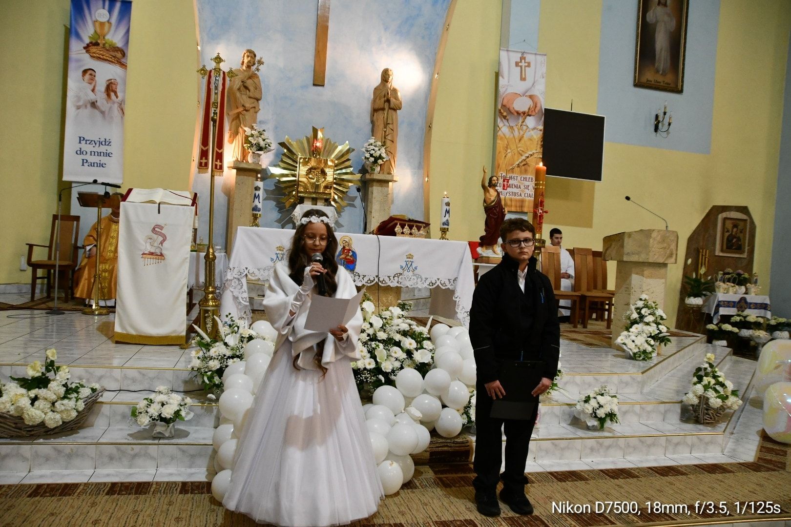 Dzisiaj, w niedzielę 18 maja o godzinie 12.00 dzieci klas czwartych obchodziły rocznicę przystapienia do Pierwszej Komunii Świętej.