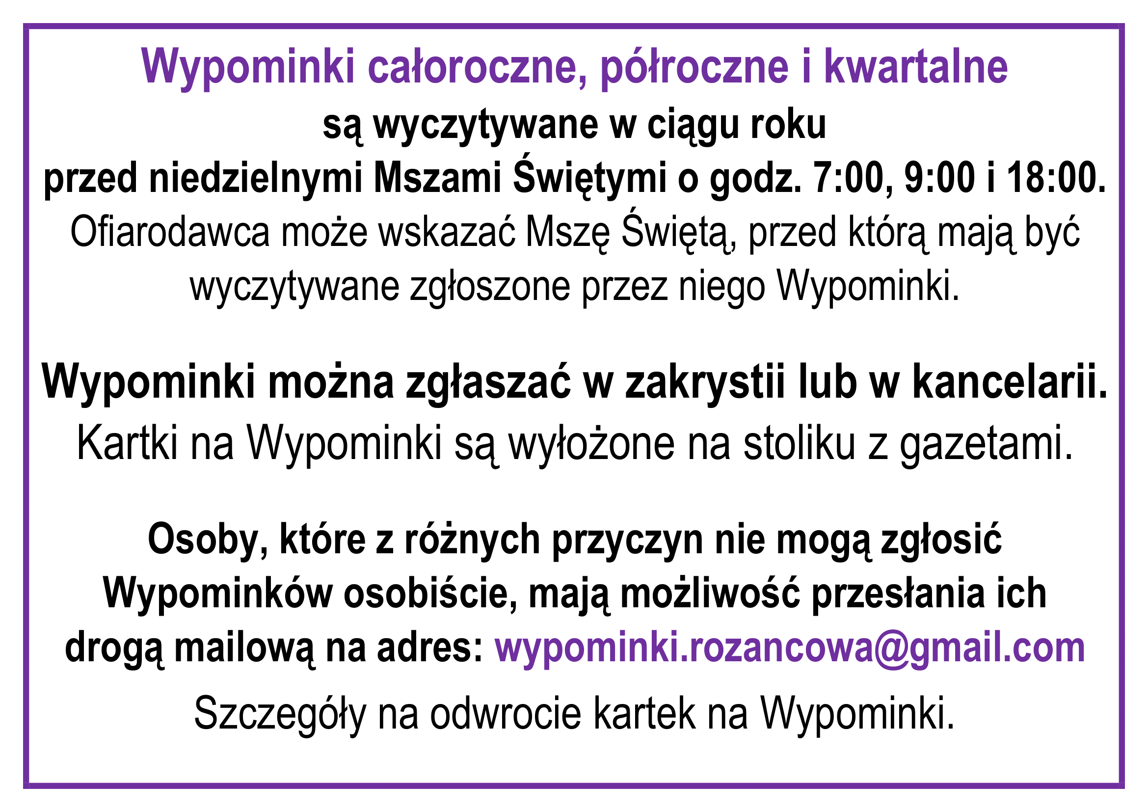 - Przyjmujemy na wypominki. Kartki na wypominki na stoliku z gazetami.
