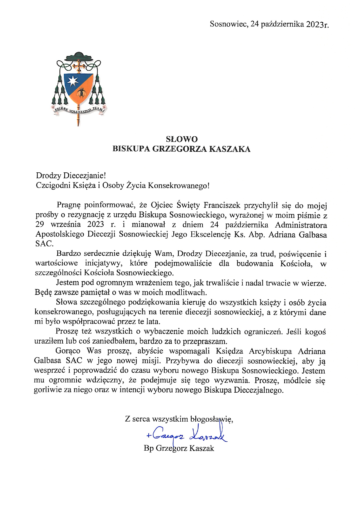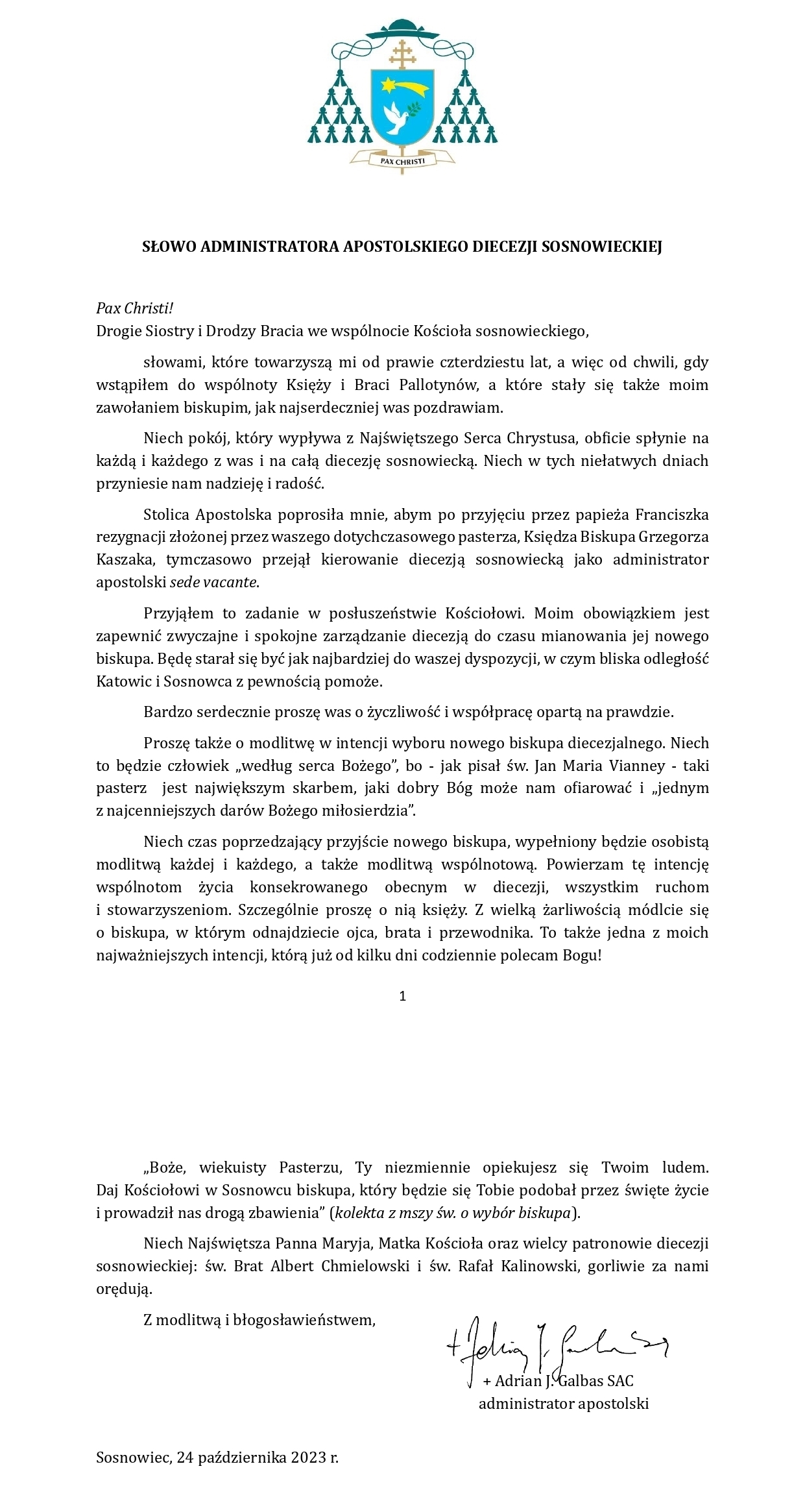 Ogłoszenia duszpasterskie 29 października 2023r.